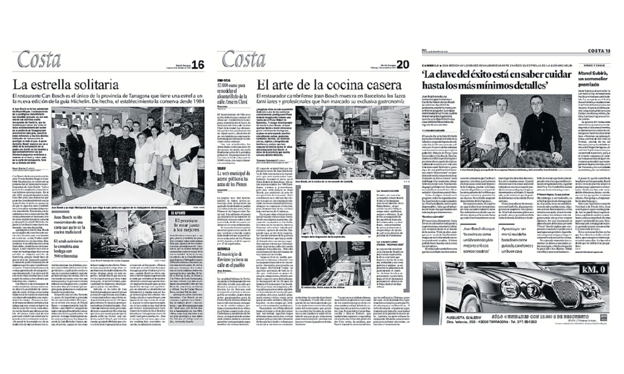 Una de les fites més significatives va arribar el 1984, quan Can Bosch va rebre la seva primera Estrella Michelin, un reconeixement que encara conserva. Aquest premi va suposar un gran impuls per al restaurant, però Joan recorda que en aquells temps tot era més lent i menys mediàtic que avui: «No notem un canvi immediat amb l’estrella, perquè el més important sempre ha estat el boca a boca». Per a Joan i la seva família, més enllà del prestigi de la guia, l’essencial era continuar convencent el client amb esforç dia a dia.